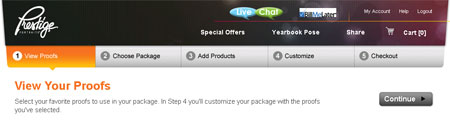 When the order is ready for checkout, I still haven’t chosen the proof for the yearbook. There is no mention of making a selection throughout the process. It turns out that you have to click the Yearbook Pose link at the top of the page to select a pose.